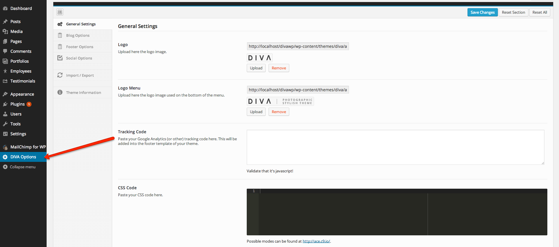 | Tracking code | Javascript | Insert here the google analytics code or other javascript code. |