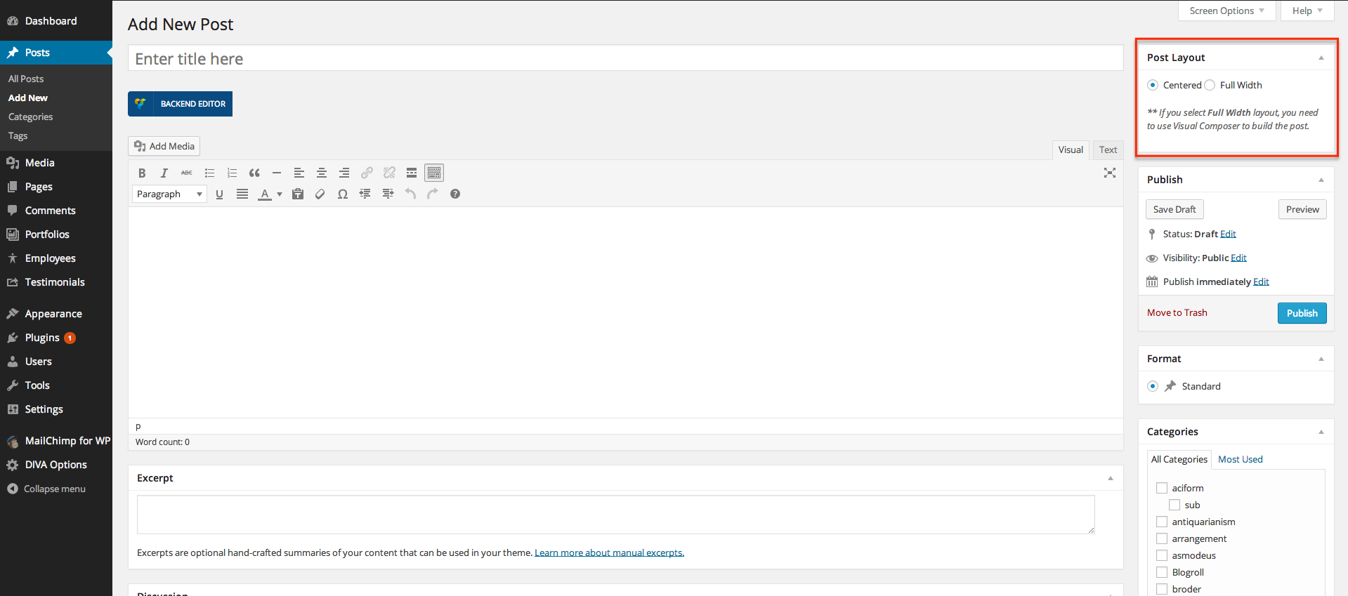 | Blog Mailchimp Subscribe | Switch | Enable/Disable the Mailchimp Subscribe info box from the blog single post. |